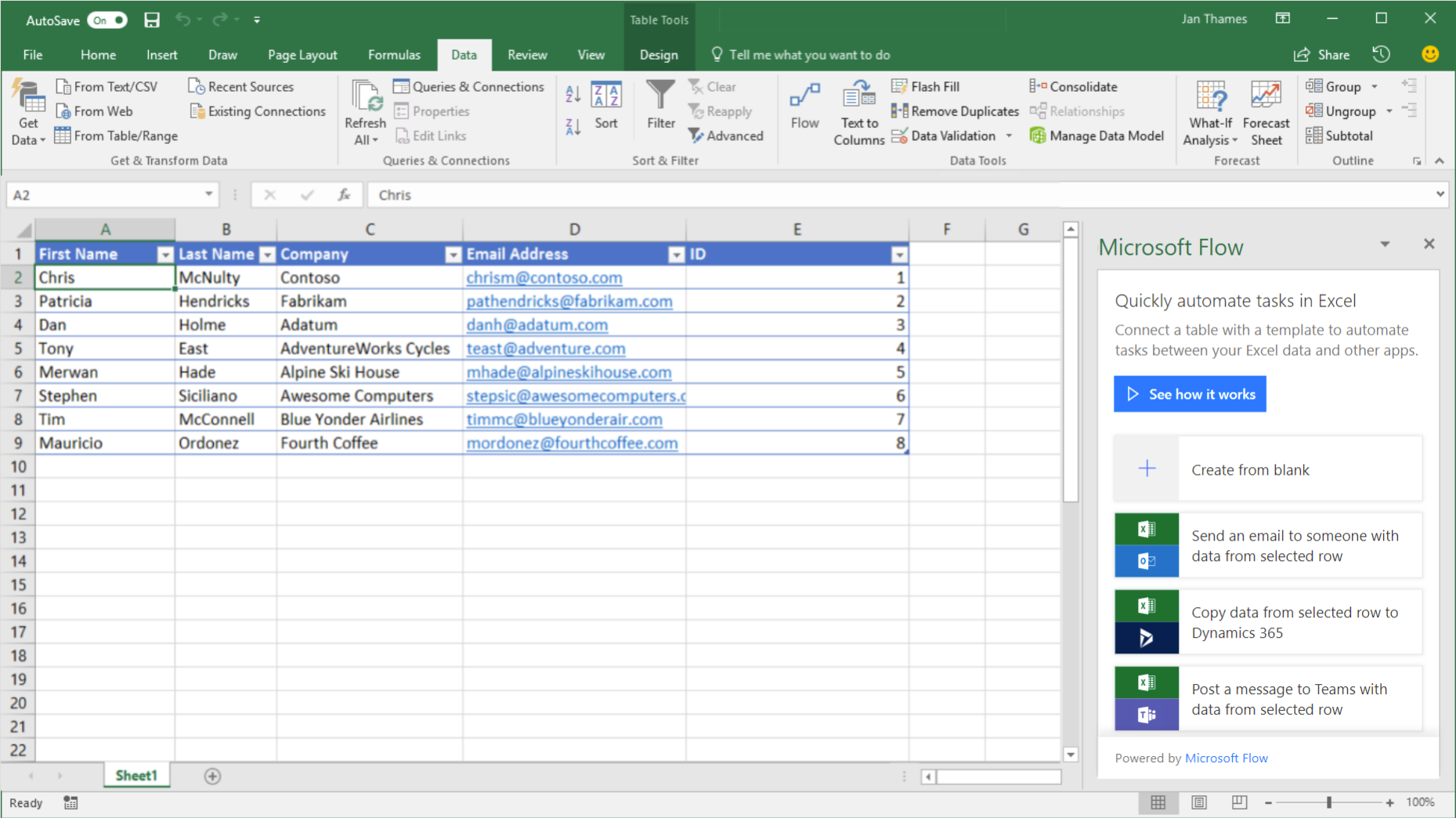 This trigger is specific in that in each of these integrated experiences, you can select an existing item (in SharePoint list, in Excel row, or in an email) and start a Flow with that item as the source trigger. Additionally, Flow can run as the current user (see #2) as part of this integration.