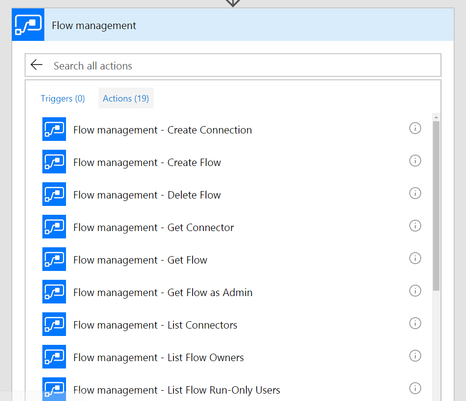 In Flow, the Flow Management Connector is a meta-level connector that lets you perform reflection-like actions on the Flows within your current environment. You can even use Flow to make other Flows.