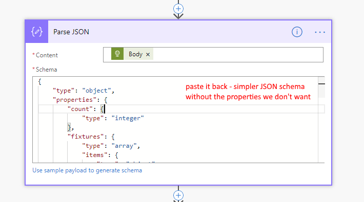 The schema Parse JSON generates is very very verbose. So there are a lot of properties that we probably just don’t care.