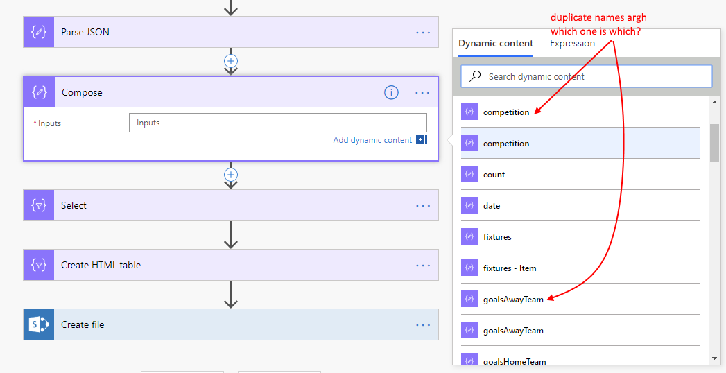 The simplest way to ease this problem is to delete the properties in the schema that you don’t want (same as problem 1). This will reduce the number of duplicate properties that appears. But sometimes, we still get some duplicate names - often I see the top level object has a ‘name’ and the child object has another ‘name’