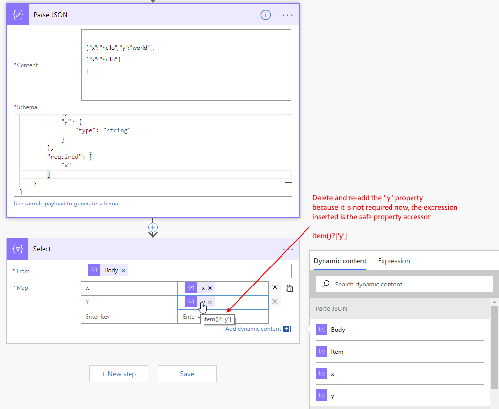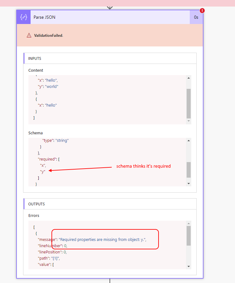 It is up to each scenario to decide if there’s value to fix the JSON Schema, or to skip using Parse JSON and just use item()?[‘property-name’] expressions directly.