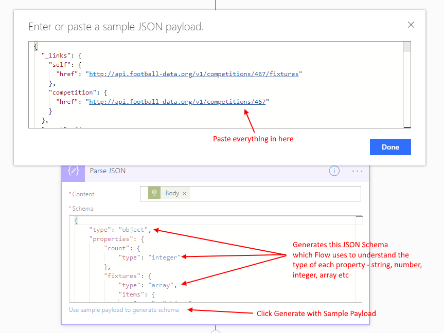 In general, the reason we use Parse JSON is because Flow doesn’t know the format of the data we are receiving in our actions. So we always start by running the actual method once - even if the Flow has only been partially completed. We want to get a sample of the data we’ll be seeing.
