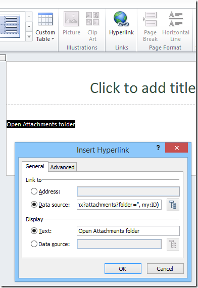 - Finally, InfoPath is quite dumb. It only has a hyperlink.