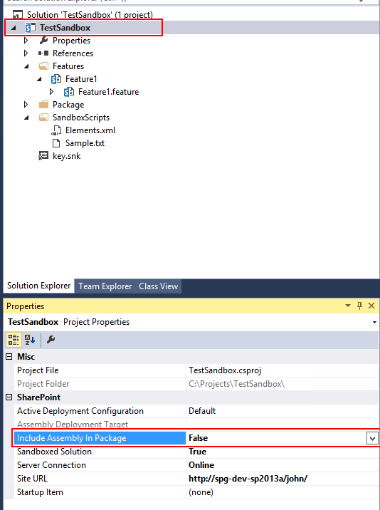 When you set the project to “not include assembly in project”, then the result is now “SPO-sandbox friendly”