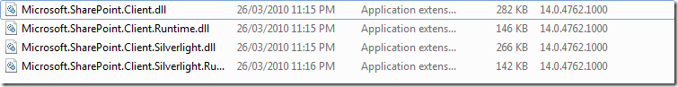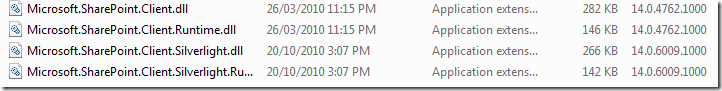 But there was a change in Microsoft.SharePoint.Client.Silverlight.dll and Microsoft.Client.Silverlight.Runtime.dll – these are the Silverlight versions.