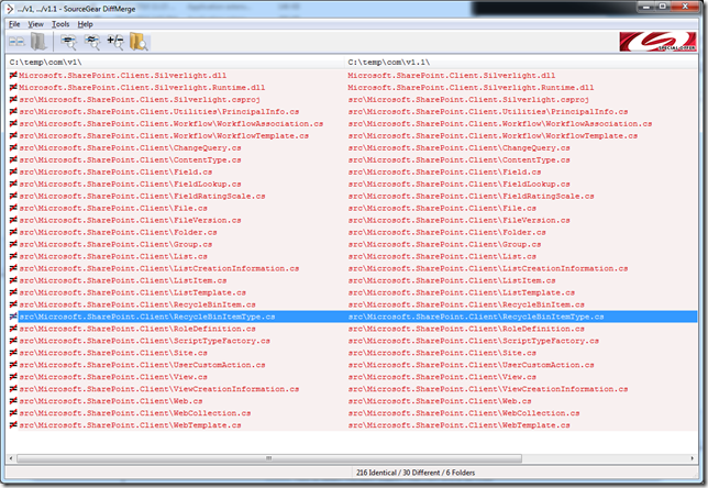 The striking thing was essentially, there are no differences in Microsoft.SharePoint.Client.dll and Microsoft.SharePoint.Client.Runtime.dll – these are the .NET versions.