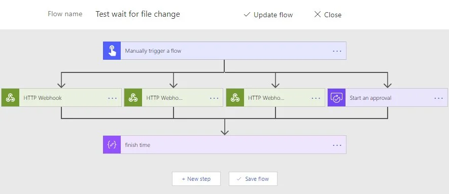 There’s also a consideration that a long running HTTP Webhook works very similar to an Approval process and the Flow will happily wait for all these steps to return before collapsing and fan-in.