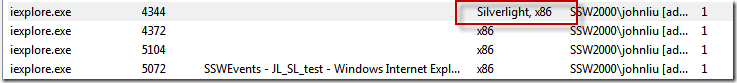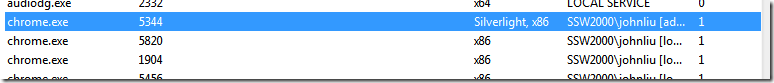 In the list of processes - look for the browser process that has Silverlight run time loaded.