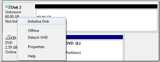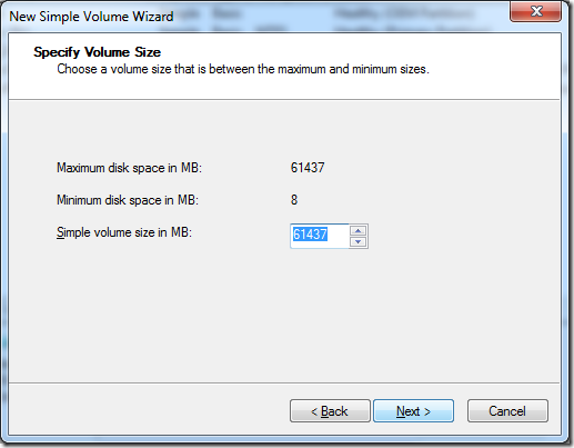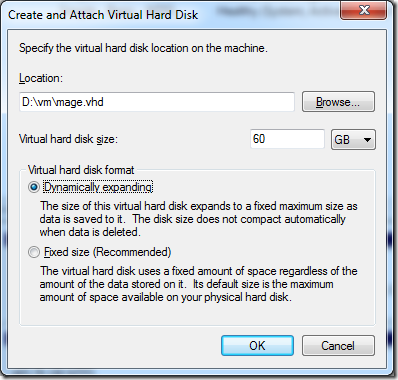 Note: I make this a dynamic disk, although I allocated up to 60GB, it only uses what it needs which was about 10 GB.