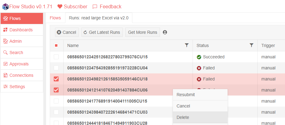 When we are sure the Flow is ready to be re-submitted, Flow Studio gives us the ability to bulk select our failed runs and re-submit them.