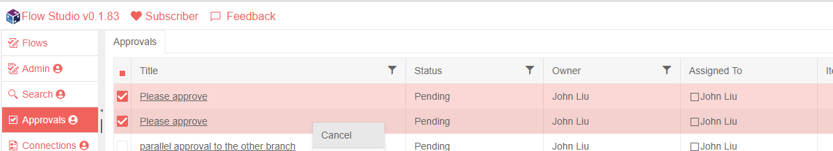 We feel this is a situational feature - it may be useful if a lot of Flows have been accidentally ran and created a lot of duplicate Approvals that we might want to cancel in bulk.