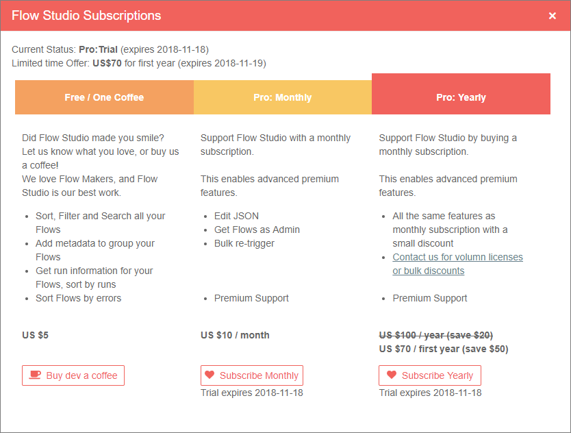 At the end of this weekend - Most of the Flow Studio customer’s accounts will flip from Trial to Free status. There is a current discount that will expire in less than two days.