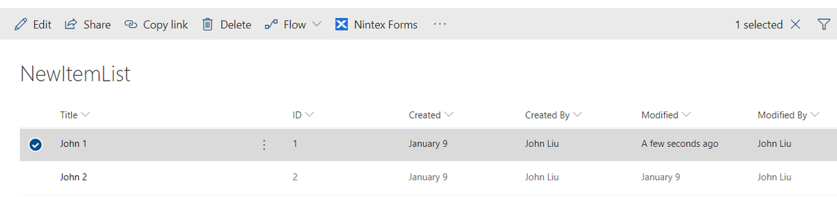 Here we have an item - modified a few seconds ago by me.