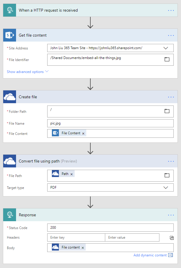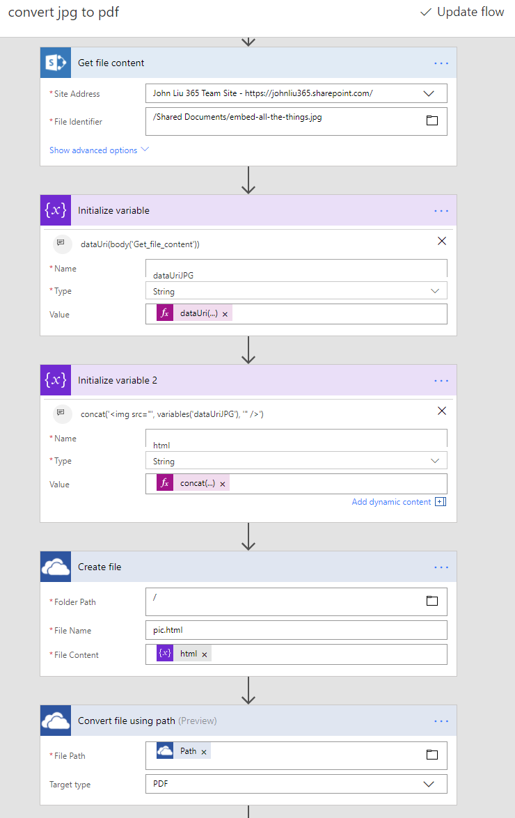 This is a crazy one, and if you have read ALL my Microsoft Flow blog posts, you’ll be familiar with all these pieces.