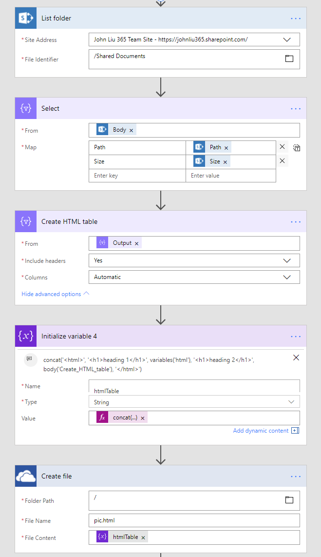 - Use Data Operations - Select to remap just the Path and Size properties (this is the same as Array.Map)