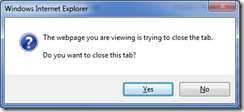 Figure: JavaScript close window confirmation - we don’t want this
