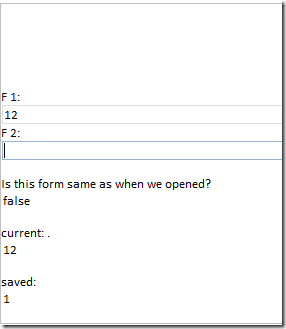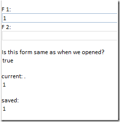 - You can then use the string(.) trick to save the current form on form-load, then use that value to compare with the form at a later date to see if the form had been changed by the user