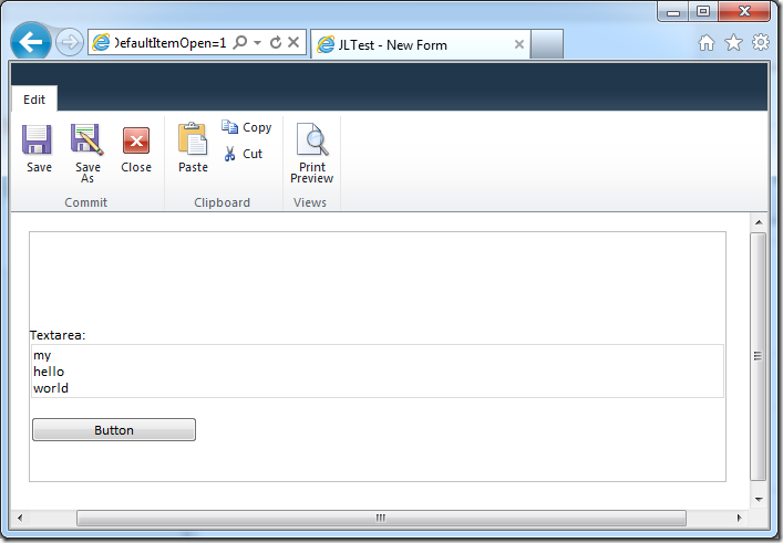 The HTML generated in the browser form is: