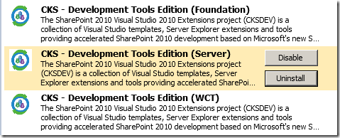 The key point here is that you will need the CKS extensions for VS.NET 2010. Grab them first from Extension Manager.