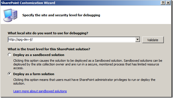 Because we are going to build an application page that is deployed into SharePoint Root, this project has to be a farm solution.