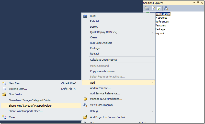 Package and deploy the solution to SharePoint - you’ll see this deployed to SharePoint root.
