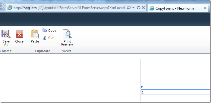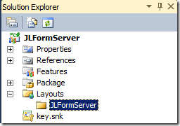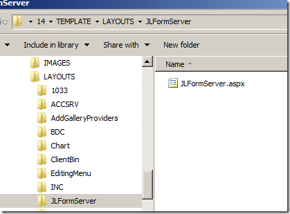 Return to our project, and paste all the contents over the sample JLFormServer.aspx file. Now, your JLFormServer.aspx file should be exactly the same as the out of the box FormServer.aspx file.