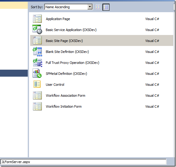 The Basic Site Page is the simplest page that can be added to a SharePoint solution. It is essentially one ASPX page without any code behind. In this example this page is sufficient for our needs.