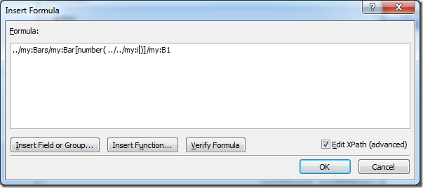 To fix the Field Target is a bit more difficult. InfoPath designer doesn’t give us a way to modify the XPath of the field.