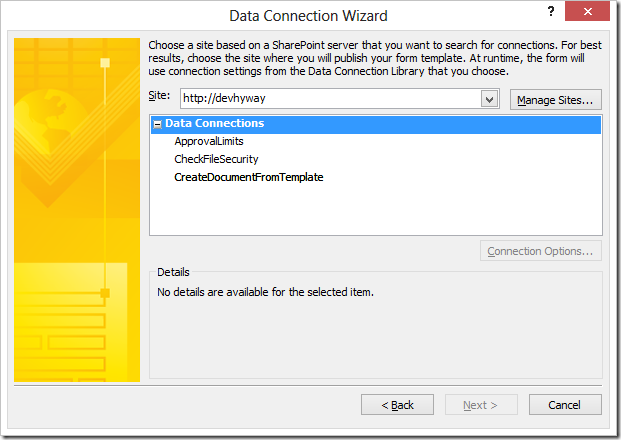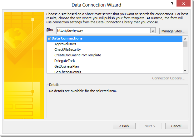 Sometimes, your InfoPath doesn’t show you all the data connection files available in your SharePoint data connections library:
