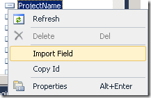 Next, navigate in the Server Explorer to the site columns, and bring in the Site columns that was promoted from InfoPath.