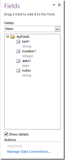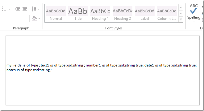 If we can’t read the template.xsd file, we don’t know if that’s a number, a string, a datetime nor do we know if the field is nillable. Some fields in InfoPath, such as the boolean and the datetime fields, can’t be blank. They have to be set to nil.