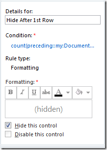 InfoPath - Using preceding:: XPath expression to hide repeating row label