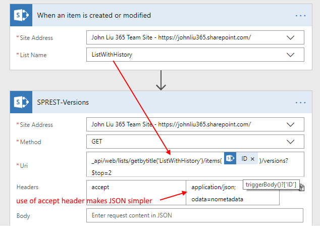 With the new SharePoint “Send an HTTP request to SharePoint” action, we can now do this in relatively few steps with the help of List Versioning.