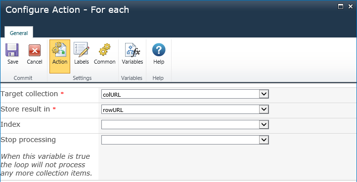 Wrap up the rest of the Workflow. After the Query List, set up a For Each action and loop through each URL in the URL Collection.