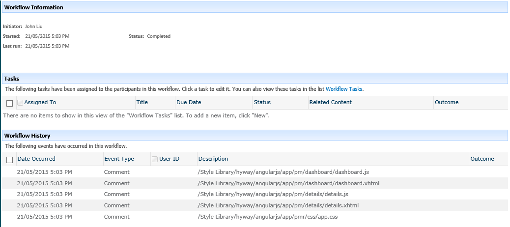 And done. Workflow runs, John’s files are checked in.