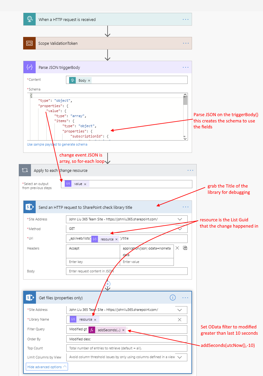 Also, unlike the complete Get Changes method, we can’t see System Update, Deletion, Rename, Permission Update events. So this method is only good for Item/File Created and Updated events.