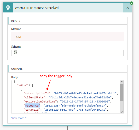 First upload a file, then copy the entire trigger body JSON.