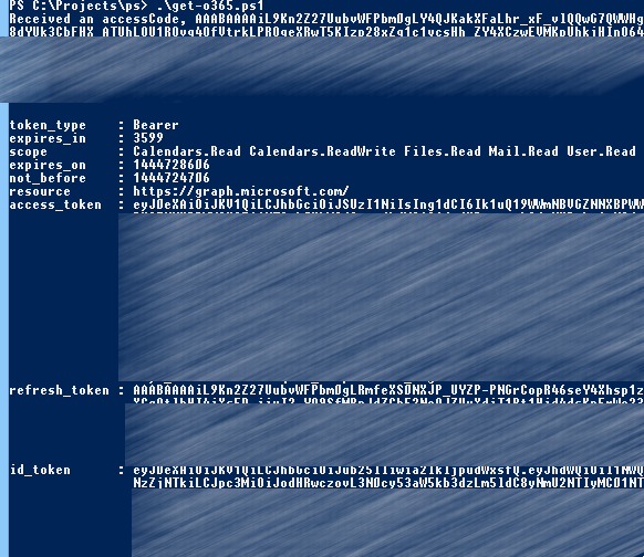 - @FoxDeploy for this article: http://foxdeploy.com/2015/09/25/using-powershell-and-oauth/