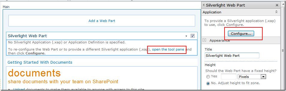 7. Configure the Silverlight webpart.