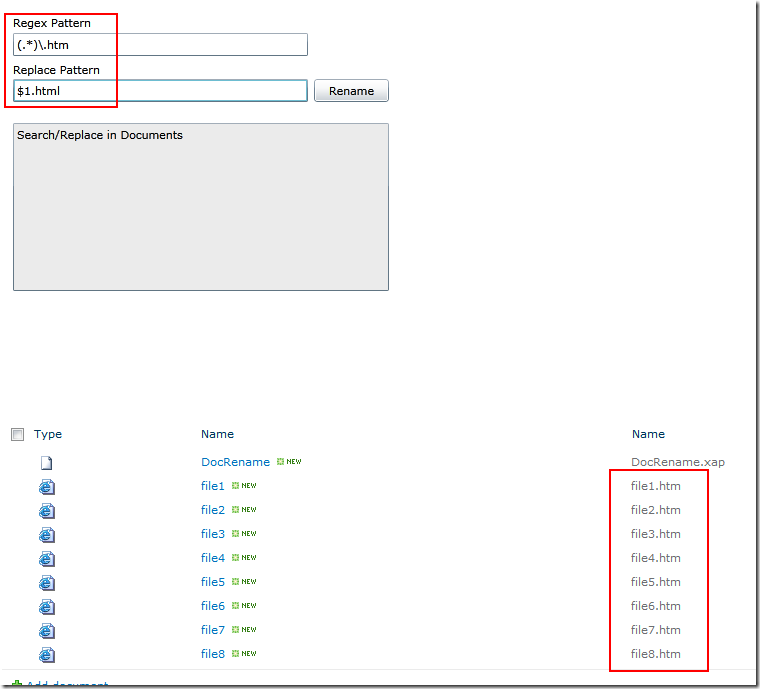 One of the first Silverlight “tools” I build for SharePoint 2010 was a tool to rename multiple files in a SharePoint document library with regular expression find/replace, via the client object model.