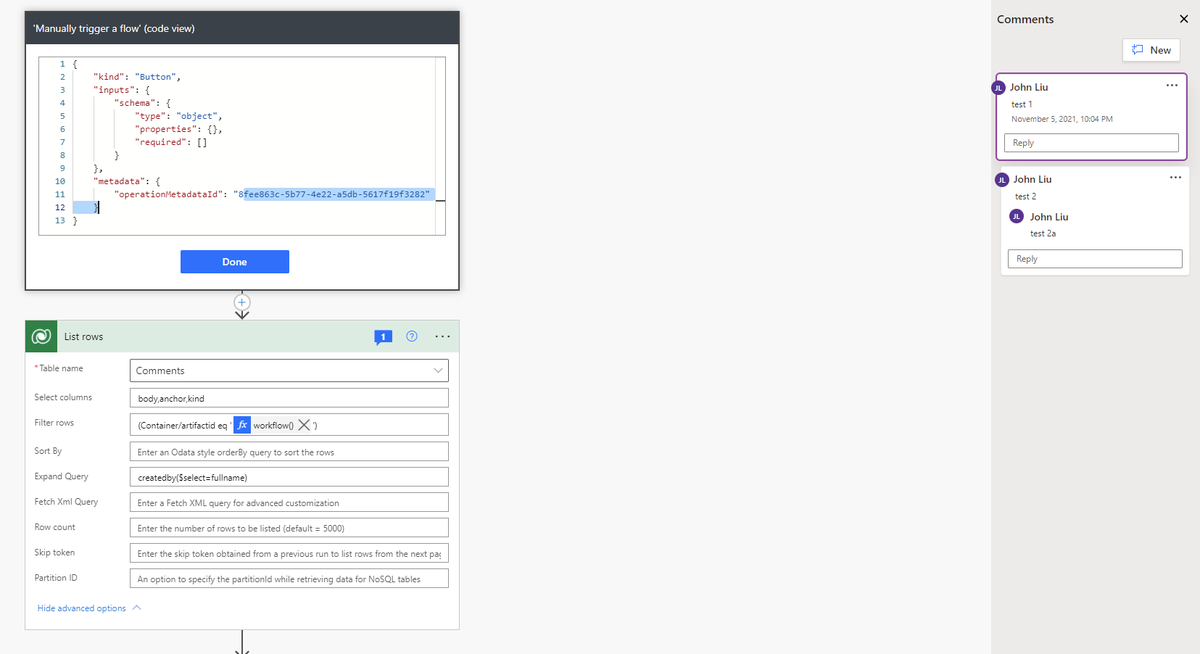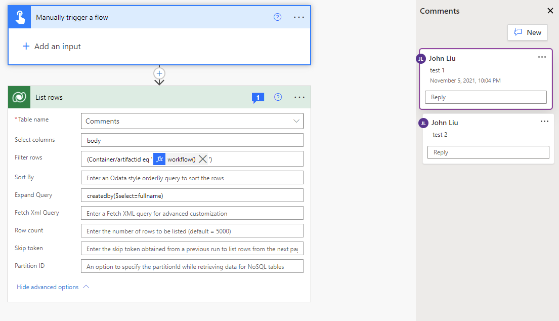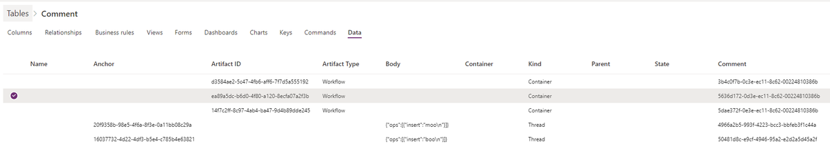 Research: Power Automate comments are stored in Dataverse