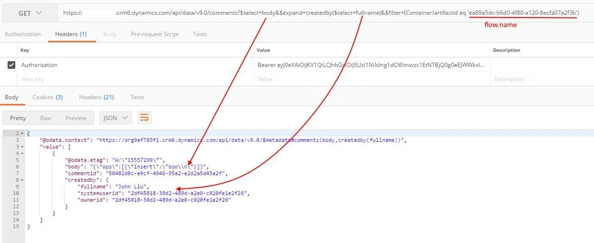 We can query Dataverse comments from WITHIN the flow about the current flow (via workflow().name expression)