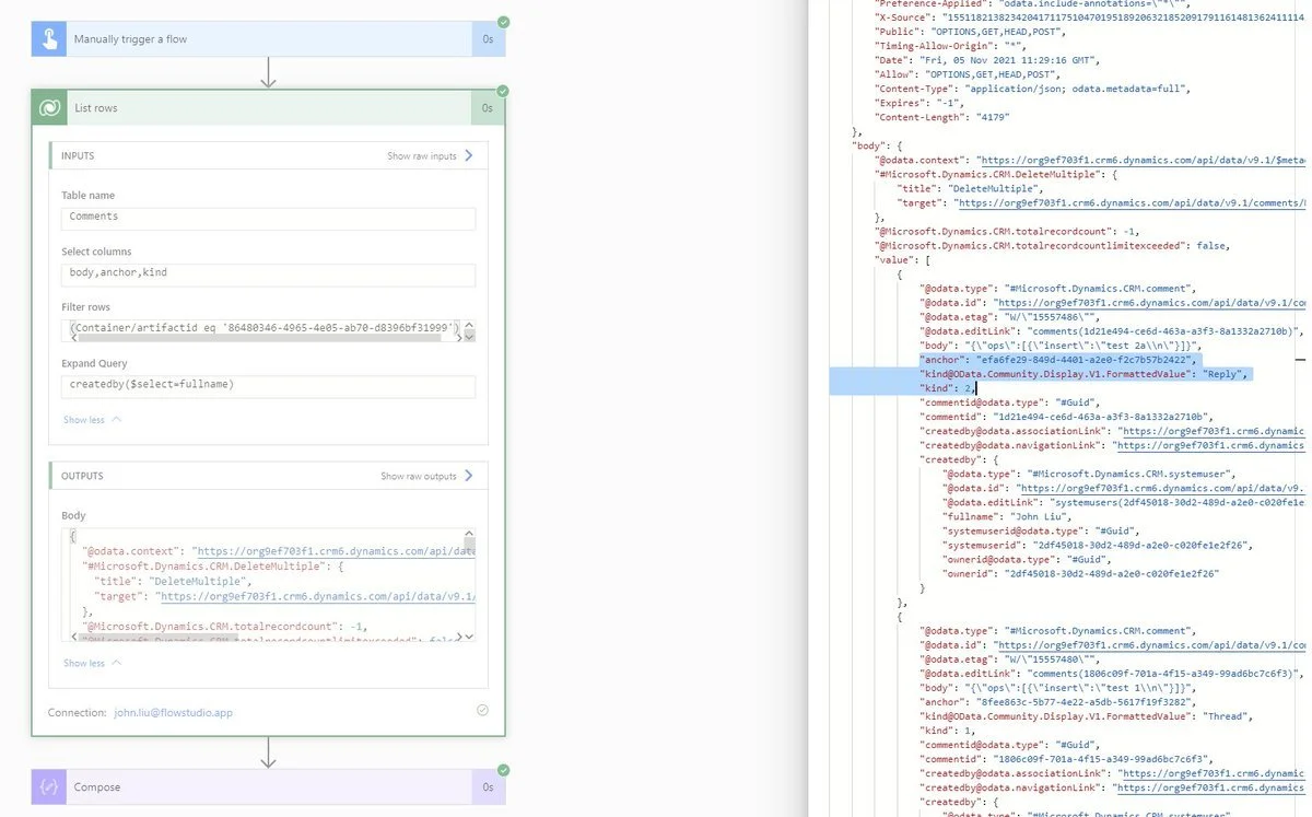Out of curiosity, and because I think listing outstanding comments might be a product feature in Flow Studio, I did some research, experimenting with REST query and general exploring on a late Friday night. This was done on Twitter, a bunch of people chipped in but also we ended up with pictures all over the place. This blog post is to collect everything in one place as a reference.