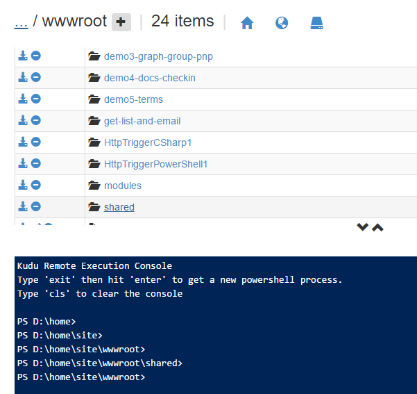 If you use a separate shared directory under the wwwroot\shared level - that’s a good place to put these shared modules too. But note that you can’t access that area via the Files right-hand pane. You’ll need to go there via the Kudu interface.