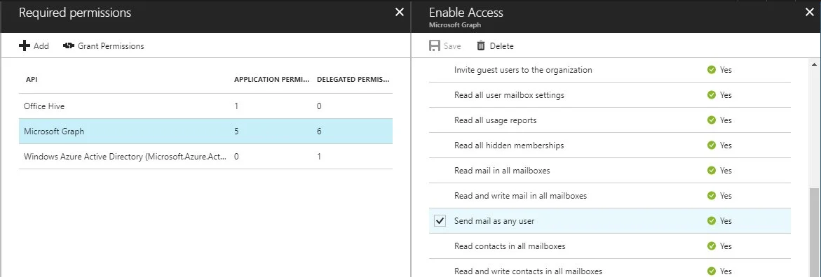 Extra notes: the service app does not have permission to read the user’s inbox or login as that user.