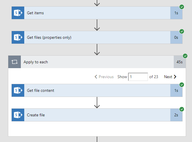 This flow, by default, runs one element at a time. Takes 45 seconds for 23 files.