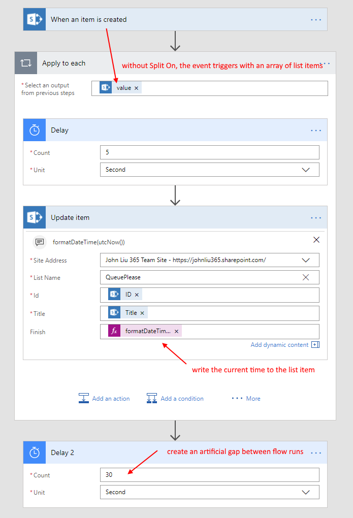 - And a small note about Split On and handling array of items on an Created/Updated event
