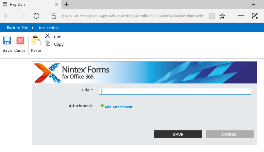 My Office 365 Form is hosted on