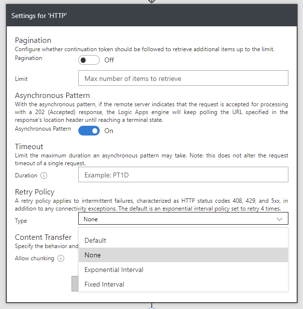 This is useful for calling AzureFunctions as well. AzureFunction through host.json lets us control de-queuing speed and concurrency, but that requires you to use a Queue trigger. When we use HTTP action from Flow - we control the retry / ease off policy through this setting. In this use case, Flow is the orchestrater.