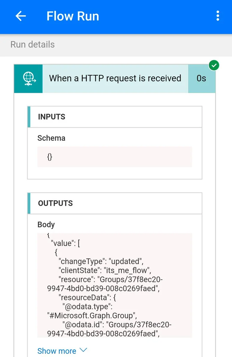 This is the message sent from Microsoft Graph to Flow to tell me I’ve got a new Group created in my tenant.